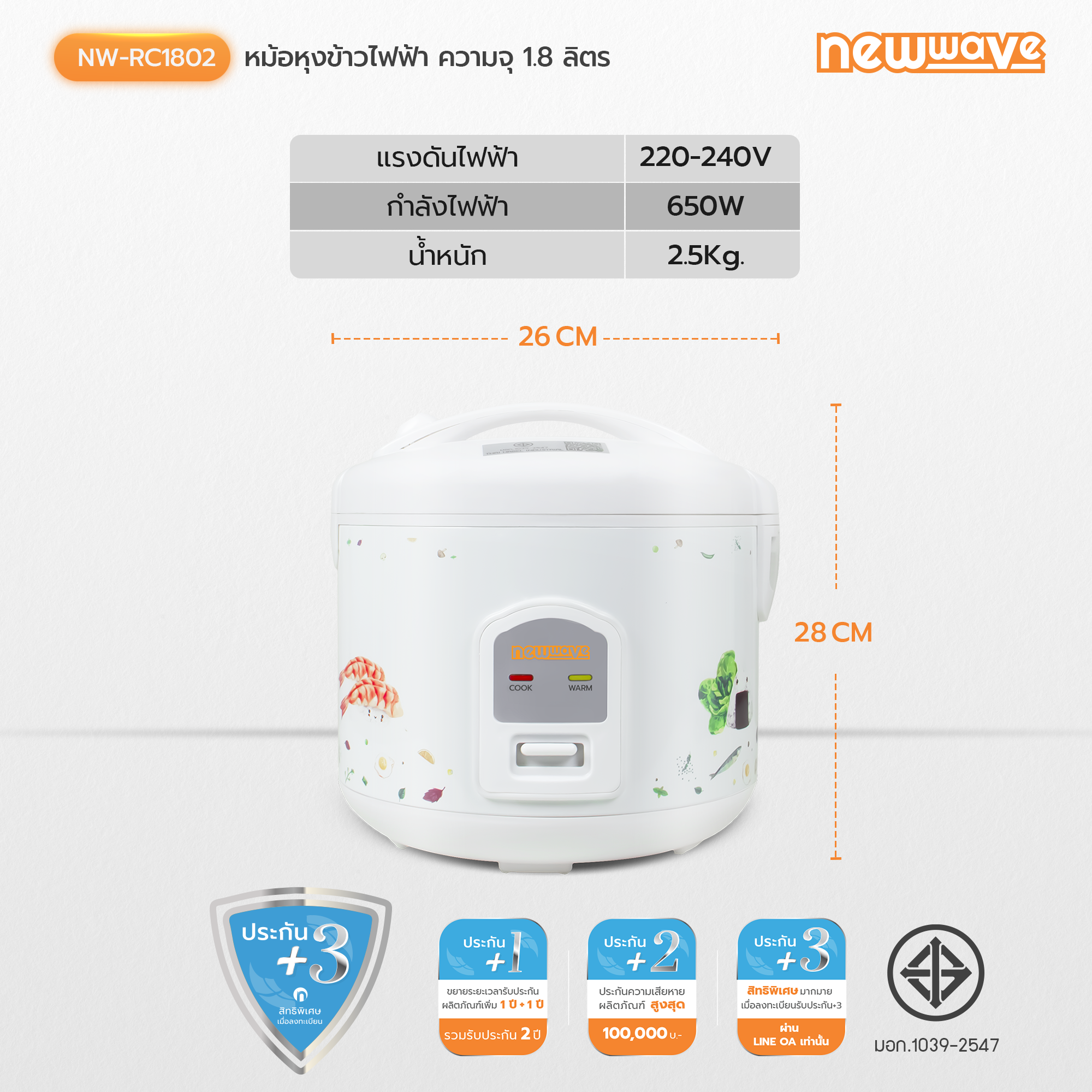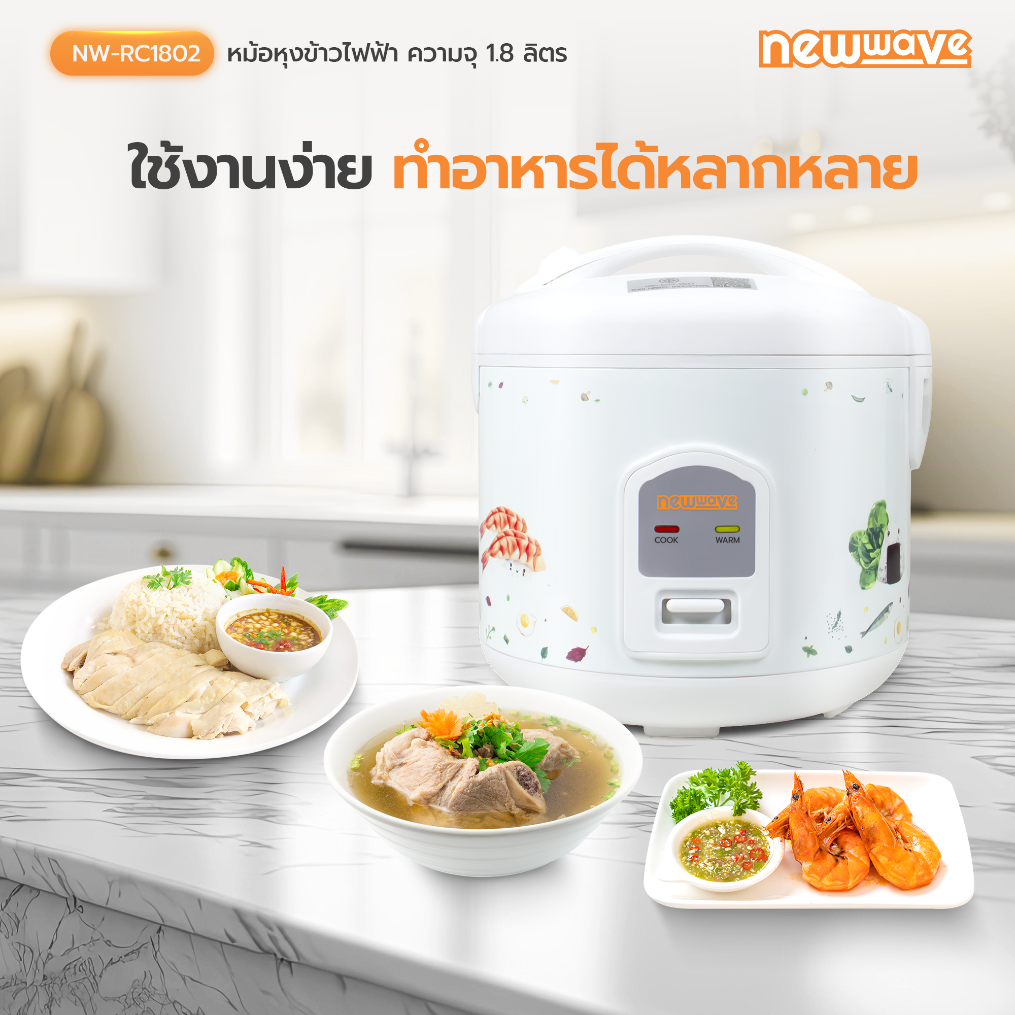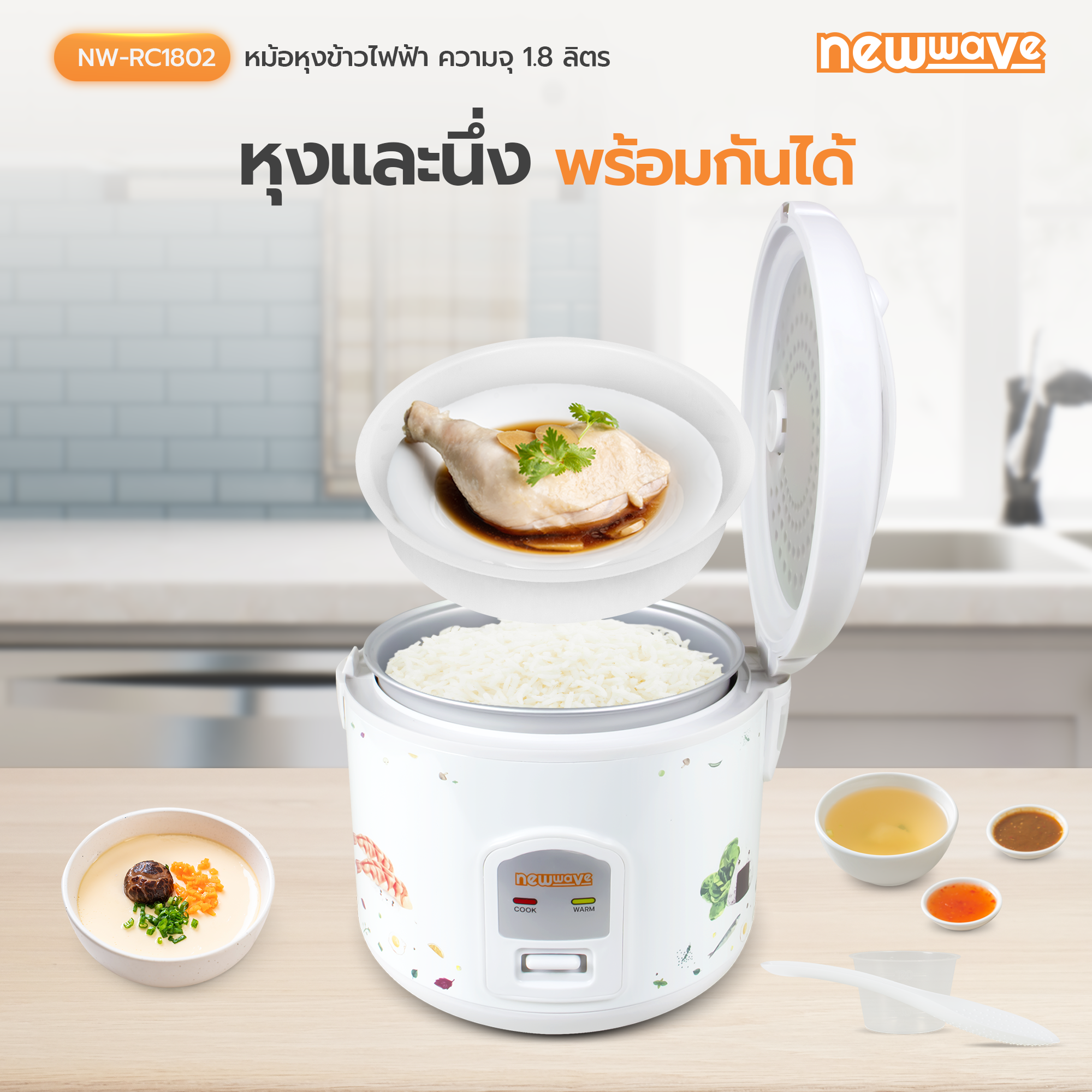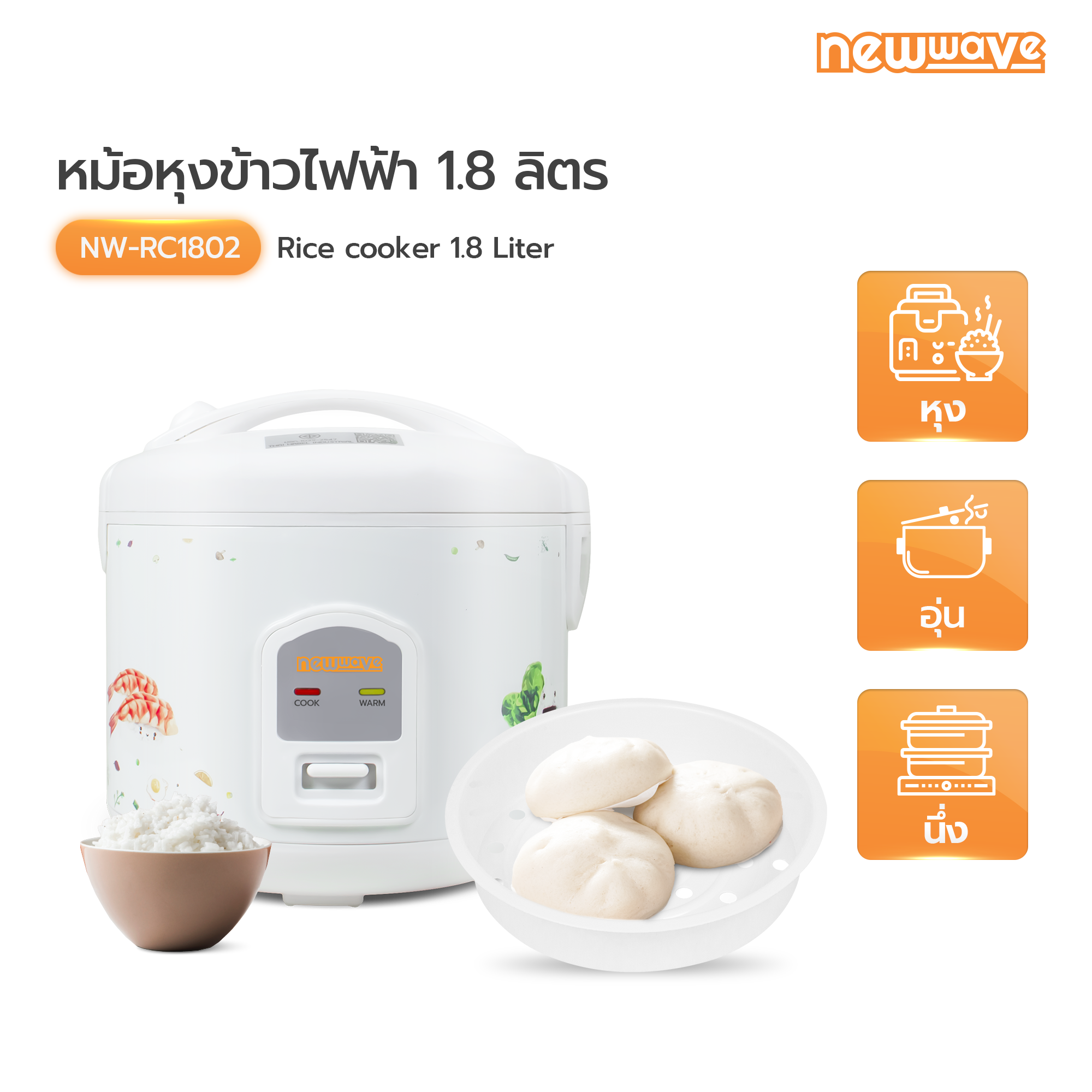 - หม้อหุงข้าวไฟฟ้าระบบอุ่นทิพย์ ขนาด 1.8 ลิตร